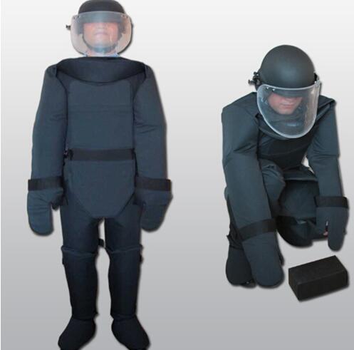 穿戴顺序:从下到上,先穿长裤、,然后从头部套入上衣部分并插入防护插板,再穿上袖子,最后戴上搜爆头盔及手套,完成穿戴;脱卸搜爆服时,按相反顺序进行。