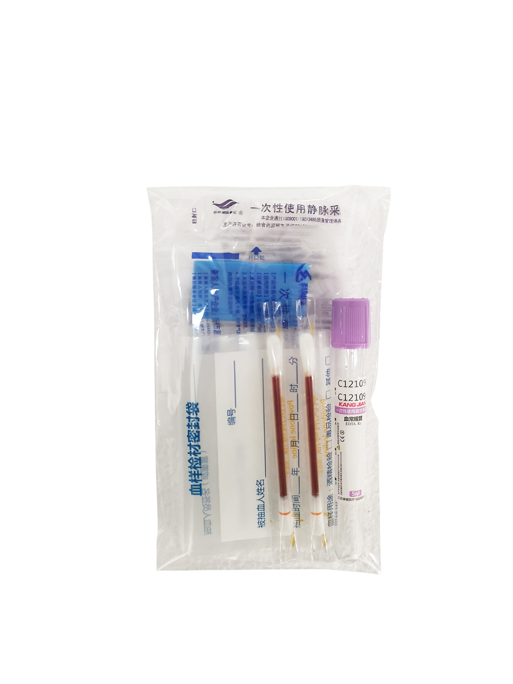采血管、一次性软管采血针、弹性止血带、止血棉签、碘伏消毒棉签、血样检材密封袋