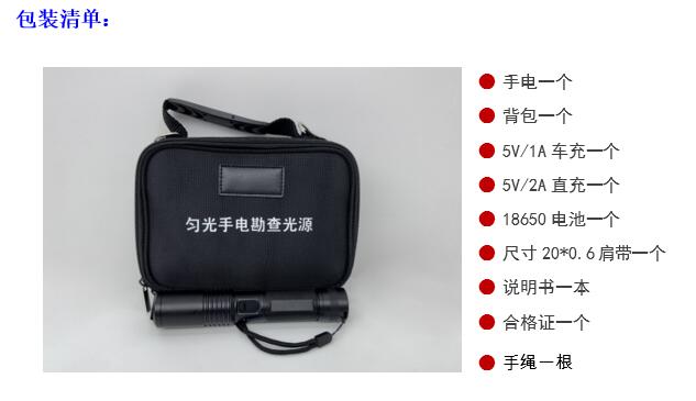 输出光纯度高,方向性强,可提供匀光照明,清晰无视觉干扰,光斑均匀不刺眼,无干扰杂散光。广泛适用于痕迹勘查目标搜索,刑侦、检查、找寻、勘察等领域;并可直接用于摄影采证照明,满足刑侦一线实战需要,是刑事技术人员理想的便携式匀光光源。