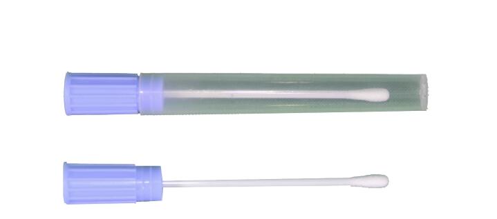 3.棉签插接固定在圆形塑料基座上,基座套接透明塑料保护管,棉签被完全保护,避免生物污染。