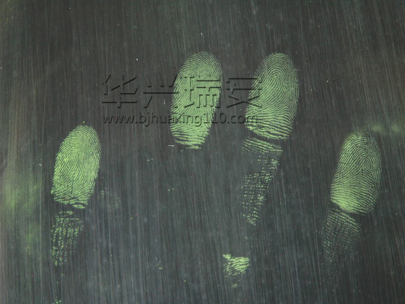 415nm紫光照射,指纹呈现黄色荧光,消除了复杂背景的干扰