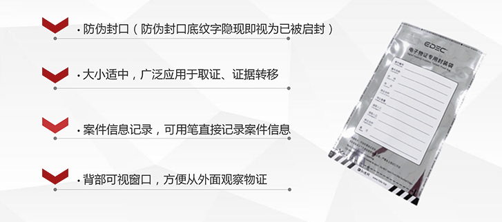 电子证据物证保存对于刑事民事案件起到非常重要的作用,EDEC防静电物证袋采用防静电物质材料,具有自身“不起”静电及屏蔽外界静电的特性,用于保存U盘、硬盘,光盘等存储介质的证据封存和转移,免受静电等外界因素影响导致检材损坏