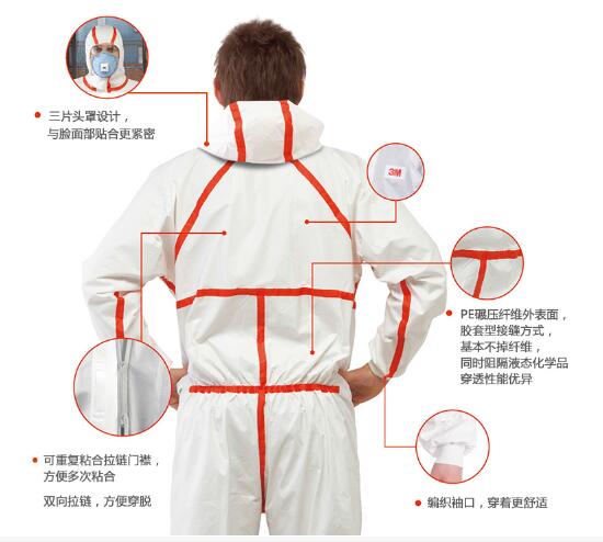 • 产品描述: 3M 4565连帽红色胶条连体防护服