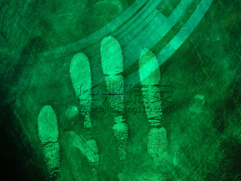 415nm紫光照射,指纹呈现黄色荧光,消除了复杂背景的干扰